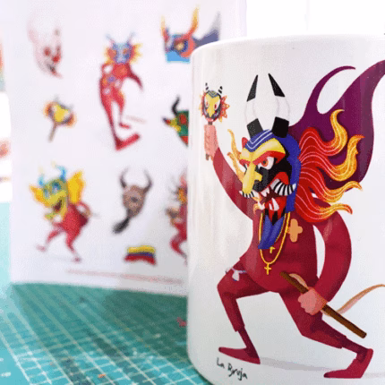 Taza de 11 Oz de "El Dragón Bebé", una de nuestras 20 máscaras de los Diablos de Yare que ademas incluye una extracto de historia o anécdota importante de la tradición. Cada uno de nuestros productos incluye un codigo Qr con el que podrás acceder a actividades mensuales con nosotros diseñadas especialmente para que seas parte de los Diablos de Yare.