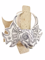 La máscara de los Diablos Danzantes de Yare ahora viene también con todo listo, solo para que vayas a casa a pintarla ya que incluimos la modalidad de la máscara ya trazada al estilo tradicional, 6 pinturas combinadas especialmente para ti y por supuesto el pincel .
