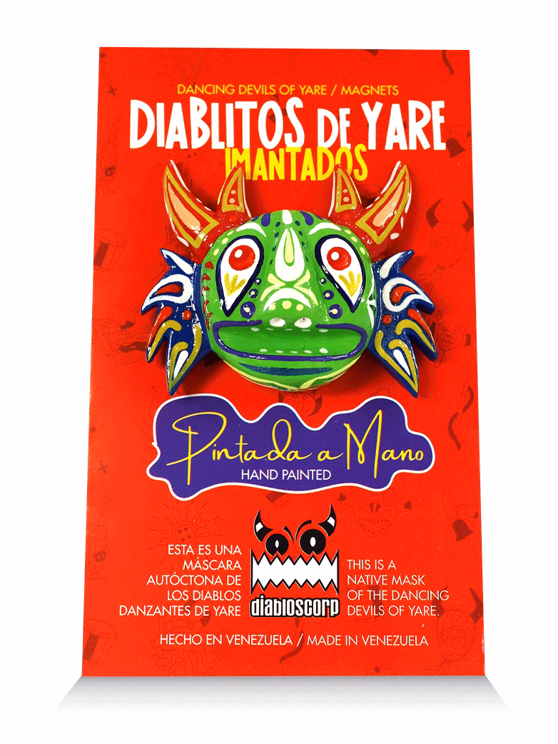 Máscaras de los diablos de Yare imantadas, un producto perfecto para la nevera o cualquier superficie metálica. Una máscara autóctona de la tradición, hecha en la cuna de la manifestación como los es el pueblo de San Francisco de Yare.